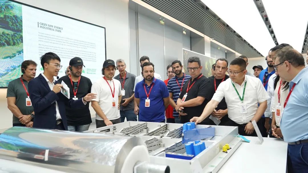 瀏覽次數:23985月16日,巴西戈亞斯州BMX商貿公司、建筑行業Sinduscon-GO協會率30余家建筑企業代表到訪鑫政科技新能源產業園,雙方圍繞建筑科技、綠色鋁材應用及新能源產業合作展開深度交流。鑫政科技執行總裁李佳率管理團隊接待,并陪同參觀企業數字展廳及智能化生產車間。