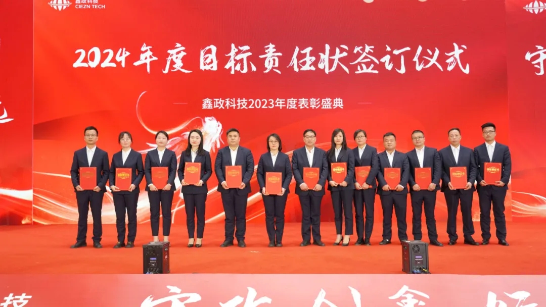 集團對2023年在工作崗位中涌現出來的優秀個人、團隊和公司進行表彰,對做出卓越業績和貢獻的管理干部頒發證書。各中心(辦)、分子公司負責人簽訂2024年度目標責任狀。