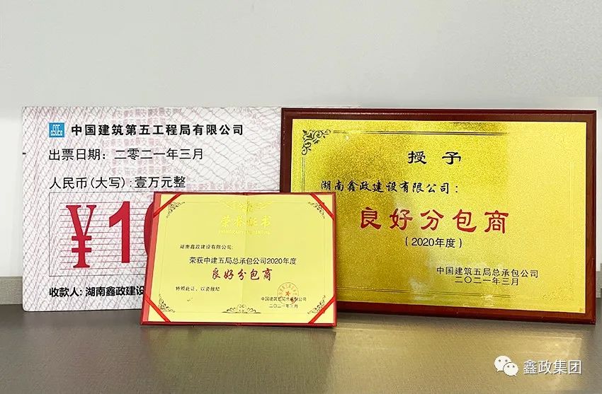 瀏覽次數(shù):1319喜訊連連捷報傳。近日,在中建五局總承包公司2021年分包(供)商答謝會暨優(yōu)秀分包(供)商表彰會上,集團下屬子公司湖南鑫政鋁業(yè)科技有限公司與湖南鑫政建設(shè)有限公司分別喜獲2020年度“優(yōu)秀分供商”與“良好分包商”獎項。