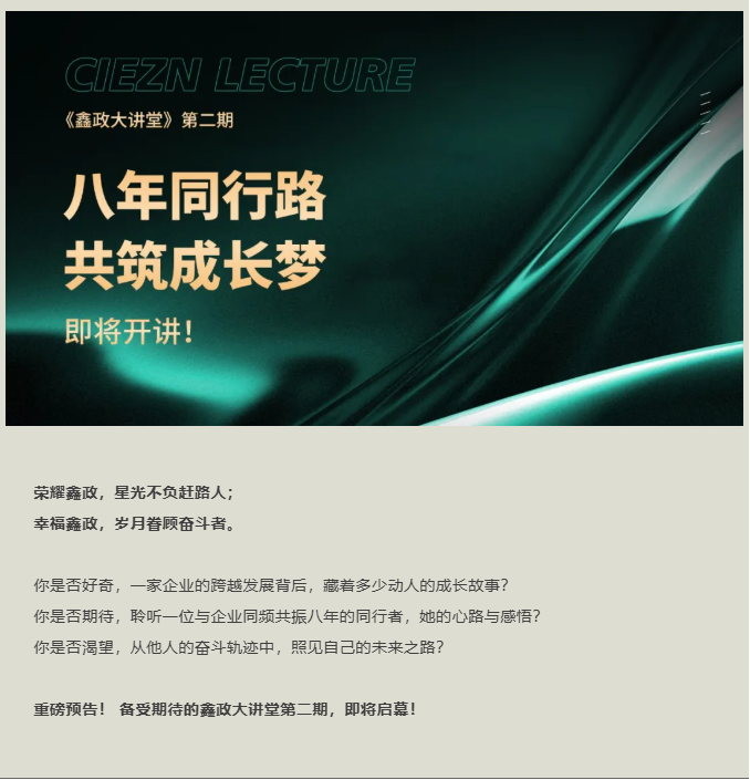 鑫政大講堂,不僅是一個(gè)傳遞知識(shí)的平臺(tái),更是一個(gè)凝聚文化、共享成長(zhǎng)、啟迪未來(lái)的舞臺(tái)。我們堅(jiān)信,企業(yè)的偉大源于每個(gè)個(gè)體的成長(zhǎng),企業(yè)的榮耀歸于每個(gè)奮斗者的幸福。本期講堂,我們將通過(guò)個(gè)人成長(zhǎng)洞見(jiàn)公司波瀾壯闊的發(fā)展歷程;通過(guò)每一位普通員工的真情流露,感受鑫政大家庭的溫暖底色,詮釋“榮耀鑫政、幸福鑫政” 的深層內(nèi)涵。